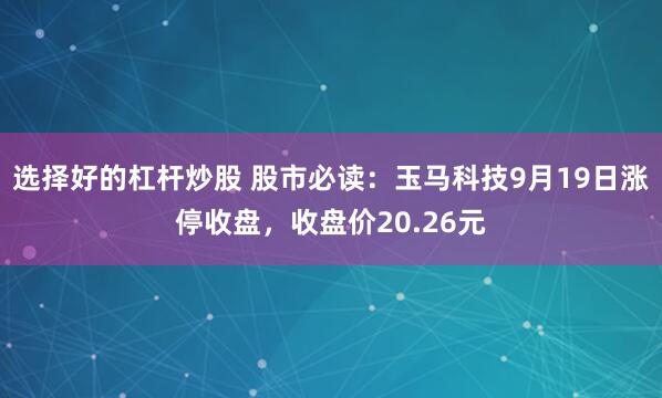 选择好的杠杆炒股 股市必读:玉马科技9月19日涨停收盘,收盘价20.26元