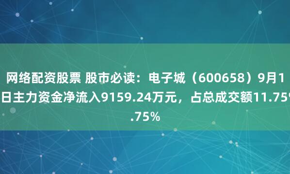 网络配资股票 股市必读:电子城(600658)9月19日主力资金净流入9159.24万元,占总成交额11.75%